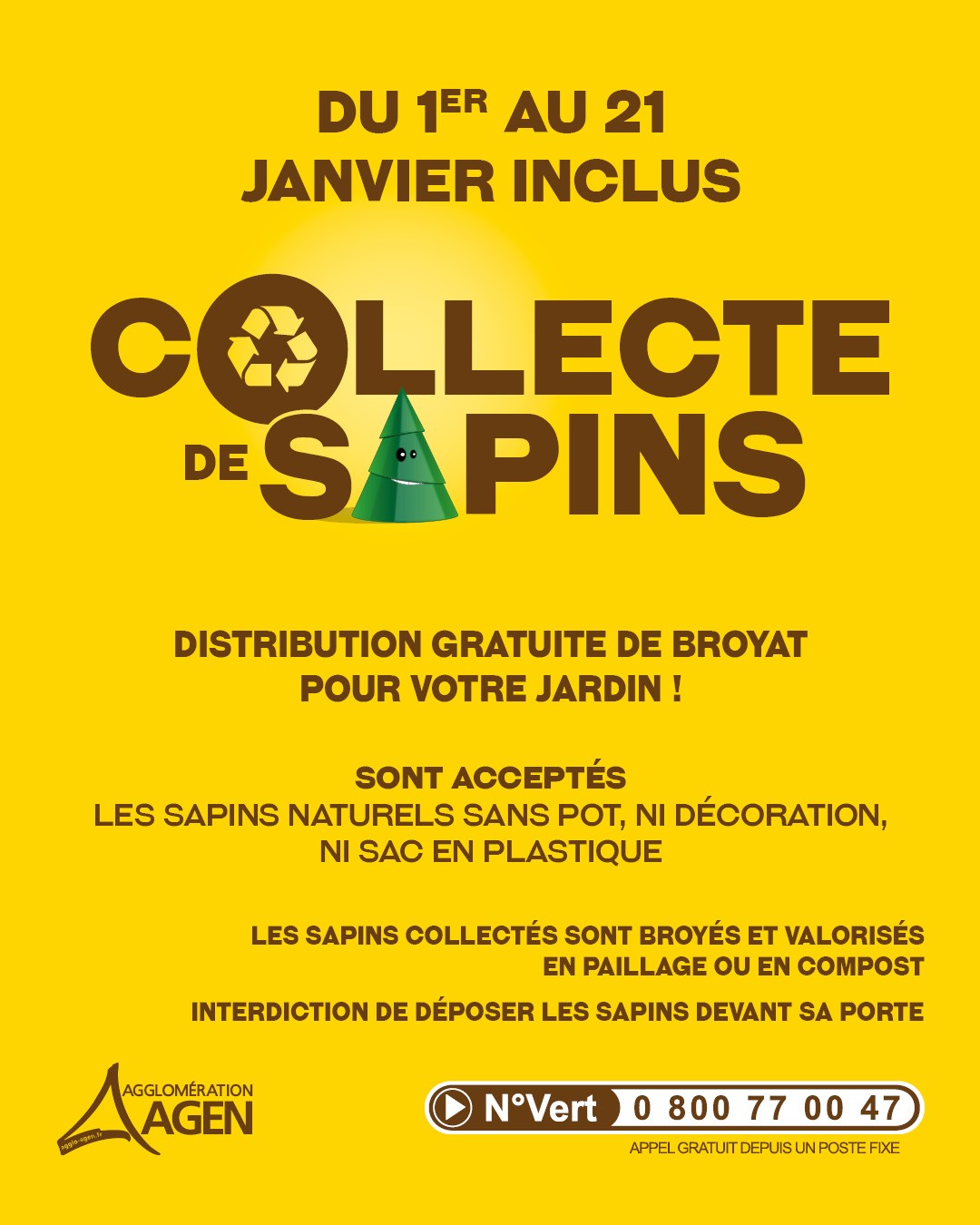 Dans le cadre de sa politique de prévention et de réduction des déchets, l’Agglomération d’Agen renouvelle, après les fêtes de fin d’année, son opération de collecte et de broyage des sapins de Noël sur l’ensemble du territoire.