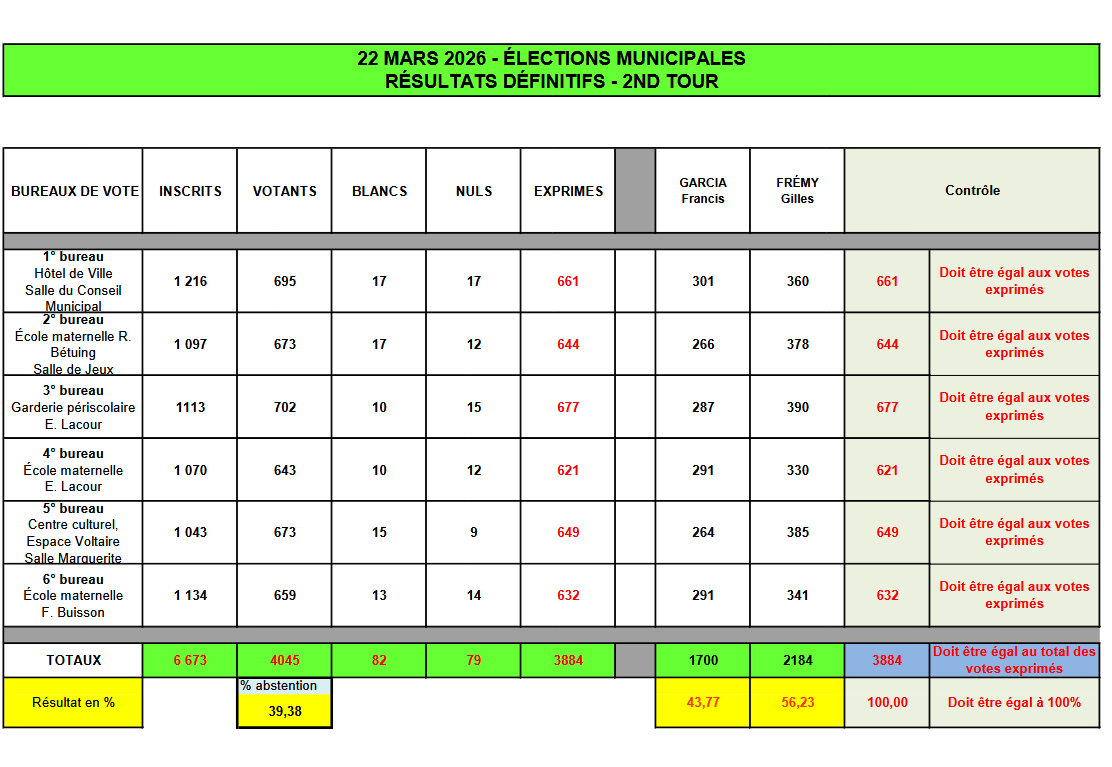 Résultats définitifs – 2ème tour des élections municipales – Commune du Passage d’Agen